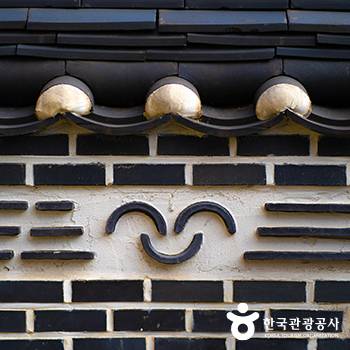 손님을 대하는 태도와 같이 방긋 웃고 있는 기와.
