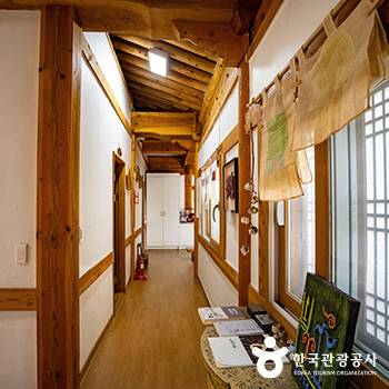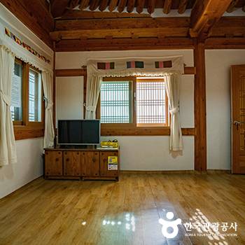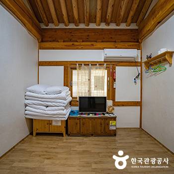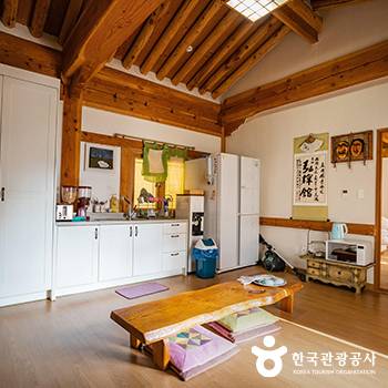 신발을 벗고 시원한 나무 향과 황토 향이 먼저 반겨주는 숙소 안쪽으로 들어왔다. 디퓨저나 향수로 연출해 낸 향이 아닌, 같은 자리를 지키며 자연스럽게 숙소 곳곳에 밴 기분 좋은 생활 내음이 은근하게 풍겨와 시골 친척집에 온 듯한 친근함을 자아냈다. 공주의 관광지를 견학 온 초등학생들이 단체로 묵어 가기도 한다는 이곳은 다같이 도란도란 식사할 수 있는 주방 겸 거실도 있어 따로 또 같이 시간을 보내기에도 충분해 보였다.