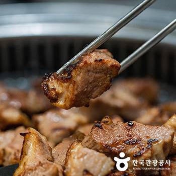 저렴한 가격과 푸짐한 양으로, 인근에 거주하는 대학생들과 주민들에게 큰 사랑을 받고 있는 곳이다. 오겹살과 가브리살을 메인으로 판매하고 있으며, 주인 내외가 직접 구워서 먹기 좋게 익었을 때를 안내해주니, 손님은 그저 편하게 먹기만 하면 된다. 시장의 안쪽에 있는데다, 인근에 제민천 산책로도 조성되어 있어 식사 후 가볍게 마을 구경을 하기에도 제격이다.