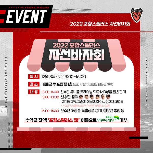 [풋볼리스트] 김동환 기자= 포항스틸러스가 2022시즌 자선 바자회를 개최한다.