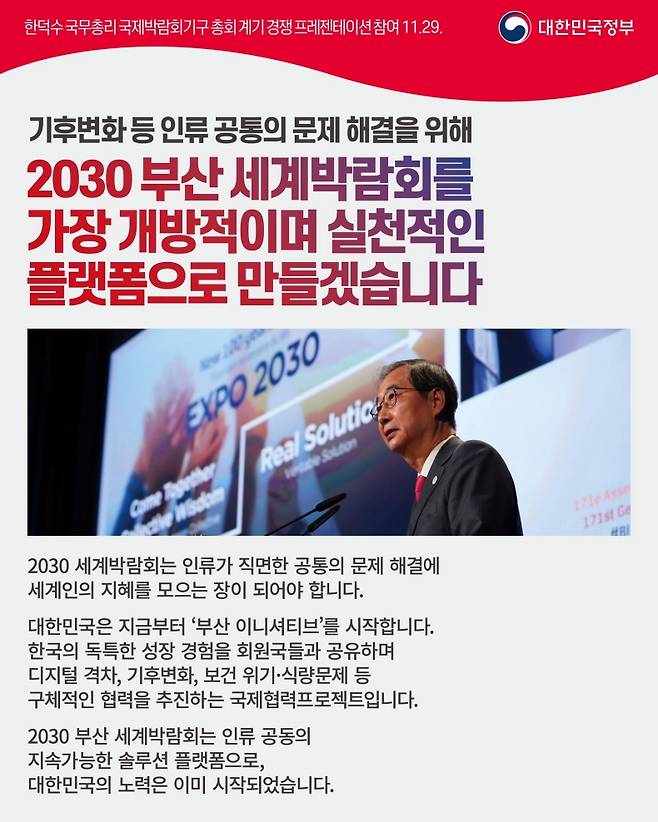 [한덕수 국무총리 국제박람회기구 총회 계기 경쟁 프레젠테이션]