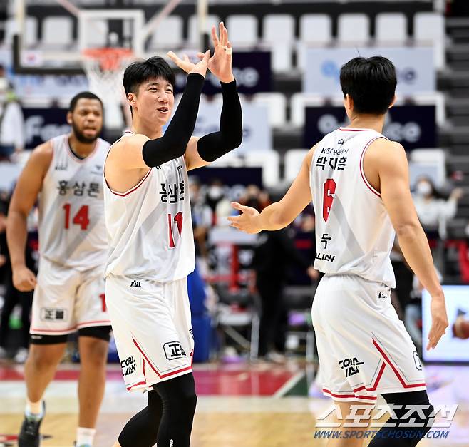 프로농구 수원 KT와 안양 KGC의 경기가 1일 수원 KT소닉붐 아레나에서 열렸다. KGC 양희종이 3점슛을 성공한 후 환호하고 있다. 수원=허상욱 기자wook@sportschosun.com/2022.12.01/