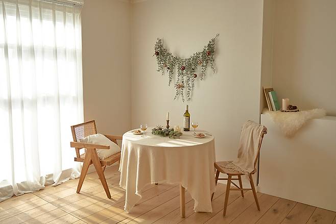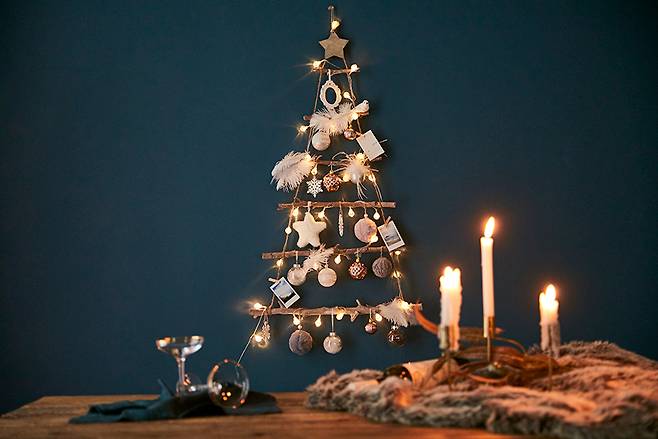 간단한 데코로 연말 분위기를 조성하는 벽트리, 벽에 설치하는 가랜드 트리, 작은 크기의 미니트리 등은 완벽하게 꾸밀 수 있도록 세트로 준비돼 있어 본인의 취향과 인테리어 컨셉에 맞게 꾸밀 수 있다.