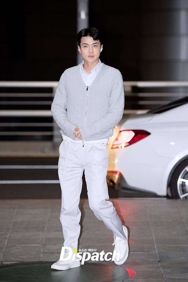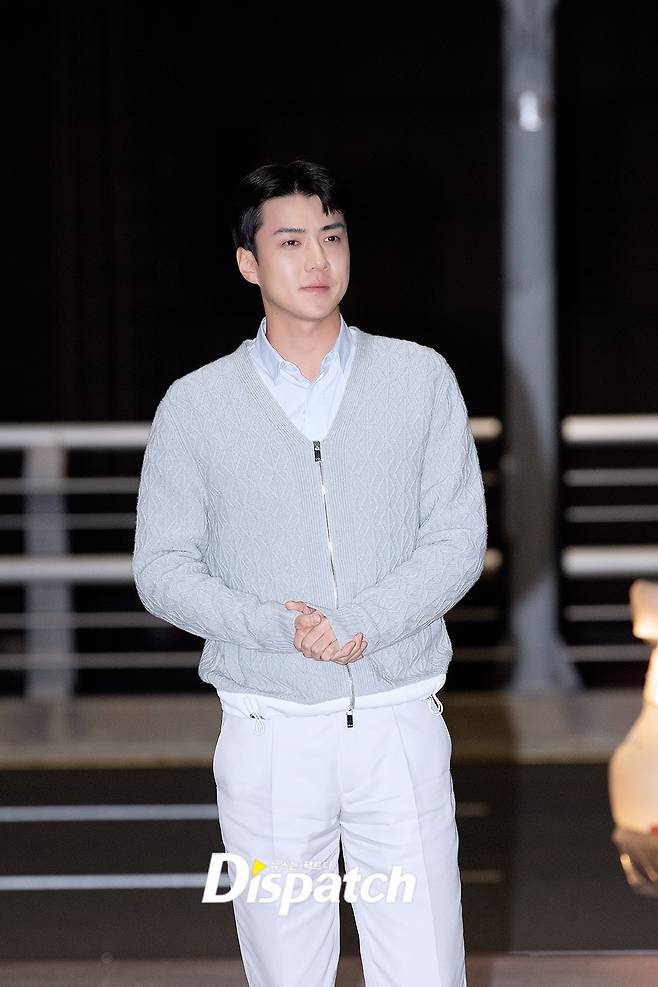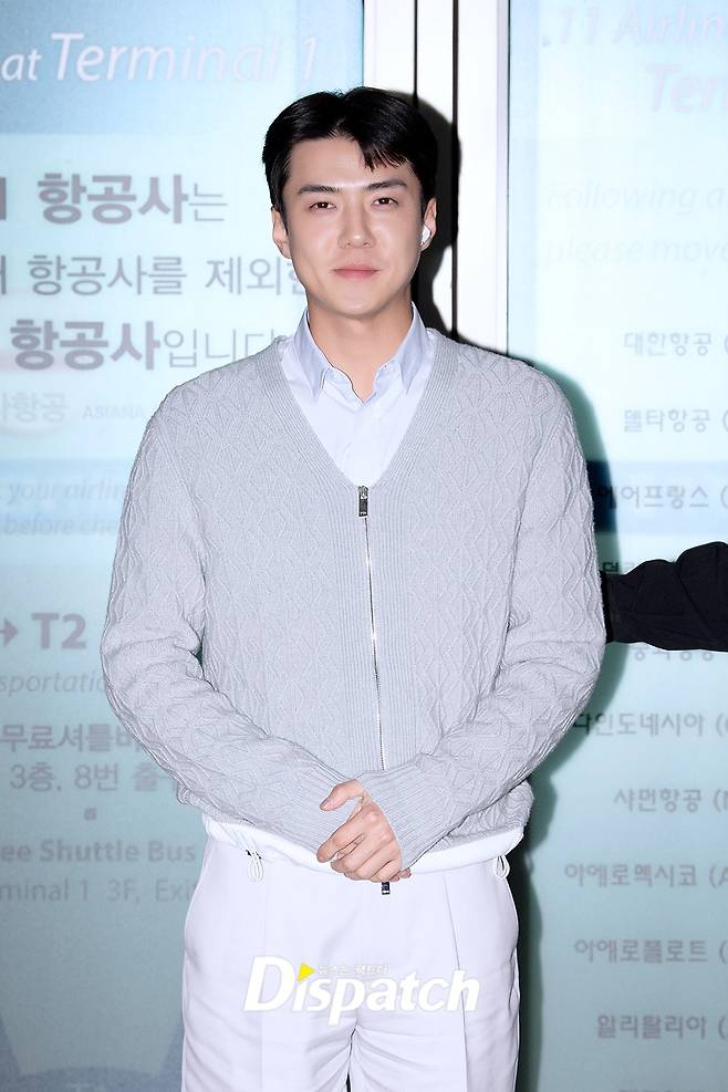 세훈은 이날 베이지 팬츠에 카디건을 매치해 댄디한 공항패션을 연출했다. 훈훈한 비주얼도 돋보였다.
