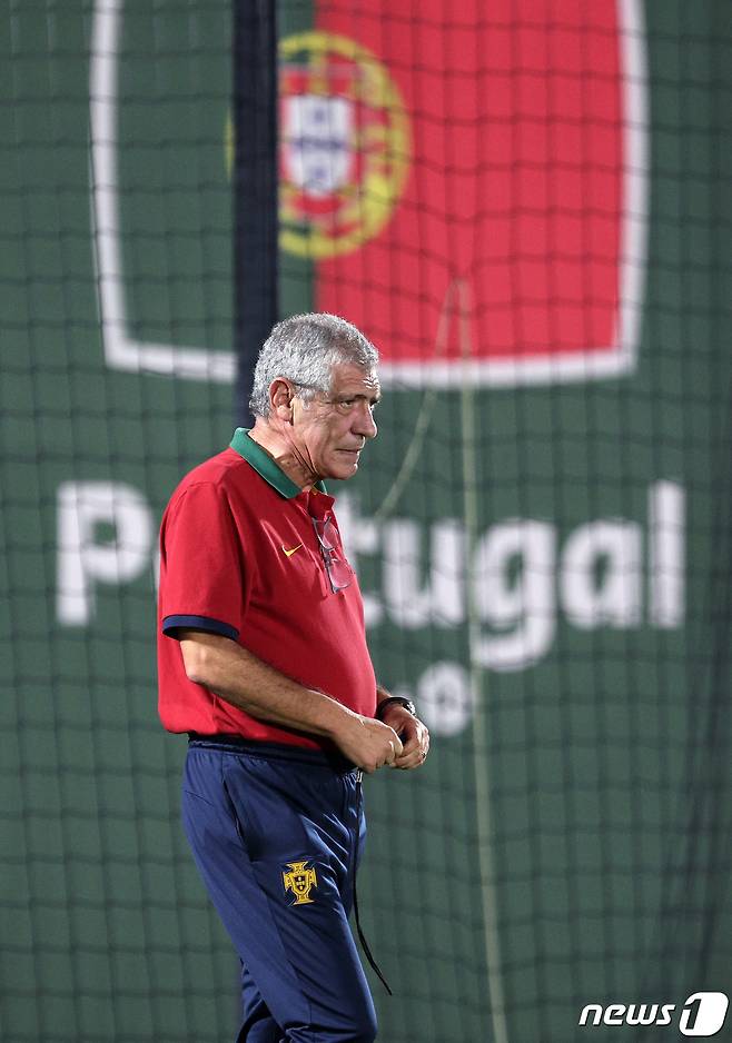 (알샤하니야(카타르)=뉴스1) 이동해 기자 = 페르난도 산토스 포르투갈 축구대표팀 감독이 1일 오후(현지시간) 카타르 알샤하니야 스포츠클럽에 마련된 훈련장에서 선수들의 훈련을 지켜보고 있다. 2022.12.1/뉴스1