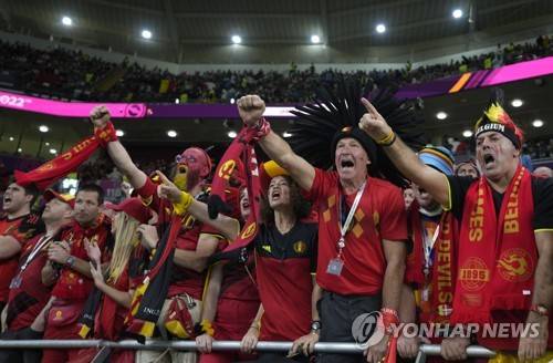 Belgium fans wait for the start of the World Cup group F soccer match between Croatia and Belgium at the Ahmad Bin Ali Stadium in Al Rayyan, Qatar, Thursday, Dec. 1, 2022. (AP Photo/Ricardo Mazalan)