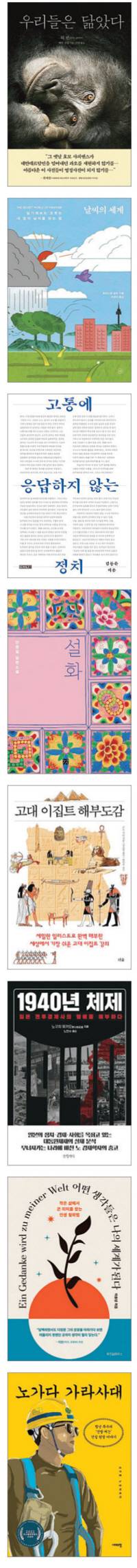 릭 퀸 지음, 이충 옮김. 자연 서식지에서 힘겹게 생존해 나아가는 대형 유인원의 이야기를 담았다. 수의사인 저자는 7년 동안 아프리카 7개국과 인도네시아 섬을 돌며 다양한 유인원을 마주했다. 저자는 이들이 멸종 위기종이 된 것은 인간의 무분별한 사냥과 환경 파괴 때문이라고 말한다. 바다출판사. 340쪽, 2만5000원.