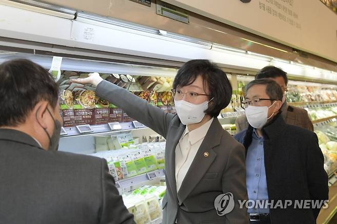 (서울=연합뉴스) 오유경 식품의약품안전처장이 2일 서울 송파구 풀무원건강생활 올가홀푸드 방이점에 방문해 맞춤형 건강기능식품 시범사업 운영상황을 점검하고 있다. 2022.12.2 [식품의약품안전처 제공. 재판매 및 DB 금지]