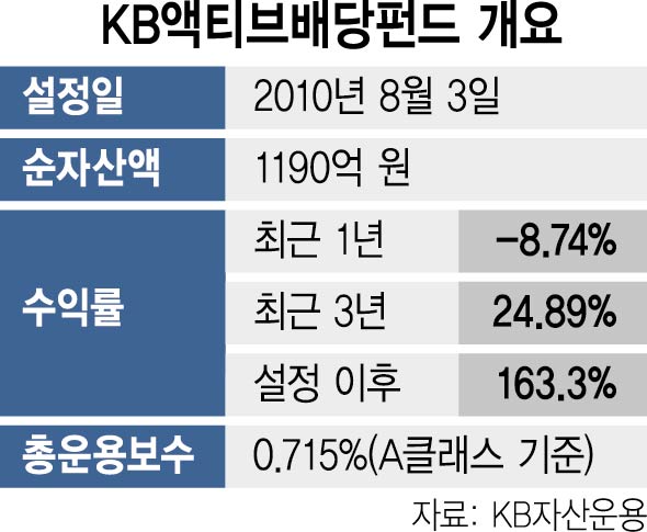 KB액티브배당펀드는 이런 시장 환경에서 탁월한 장기 성과를 올리며 두각을 나타내고 있다. 최근 주식시장의 등락이 심화하면서 1년 수익률(2일 기준)은 -8.74%로 부진했지만 3년, 5년 수익률은 24.89%, 13.70%로 장기 수익률에 강한 모습을 보여줬다. 2010년 설정 이후로는 코스피 대비 151.5% 상승률로 시장 대비 우수한 성과를 보였다.