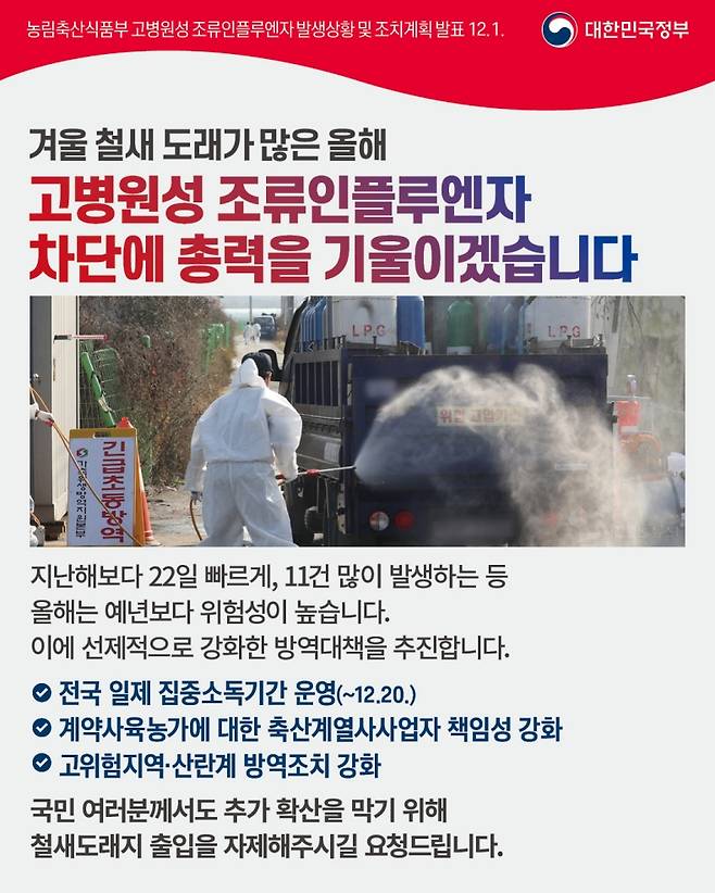 고병원성 조류인플루엔자 차단에 총력을 기울이겠습니다