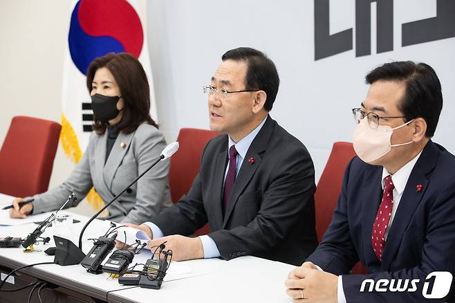 (서울=뉴스1) 유승관 기자 = 주호영 국민의힘 원내대표가 2일 서울 여의도 국회에서 열린 김진표 국회의장 주재 여야 원내대표 4차 비공개 회동을 마친 후 기자간담회를 열고 입장을 밝히고 있다. 2022.12.2/뉴스1