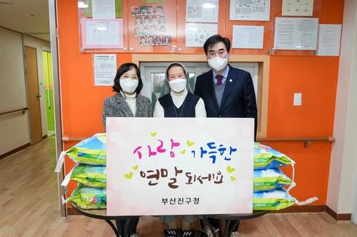 부산 부산진구(구청장 김영욱)는 12월 2일 연말을 맞이해 장애인복지시설인 헬렌의 집 외 2개소를 방문해 양곡20㎏ 33포 전달하고 원생 및 시설 종사자 등 153여명을 격려했다.