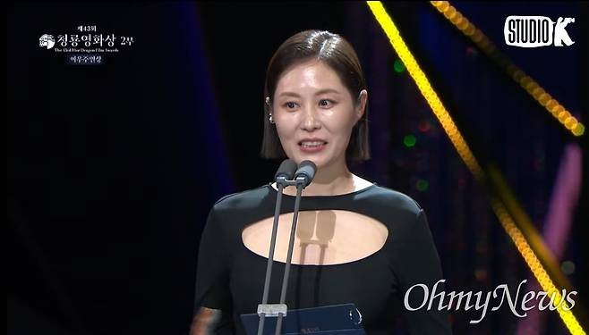 | ▲ 지난 11월 25일 제43회 청룡영화상 시상식에서 여우주연상 시상을 위해 배우 문소리가 무대에 올랐다. |
