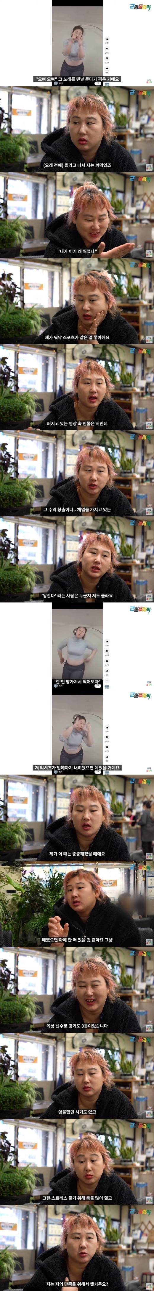 영상이 '핫'해진 사실을 최근에야 알았다는 그는 "올리고 나서 까먹고 있었다. 그런데 갑자기 친구한테 연락이 왔다. '왕간다가 누구인데 언니가 화면에 나와?'라는 거다. 저도 딱 봤을 때 '이거 왜찍었나. 이게 나야?' 이런 생각도 들었다. 주위에서 '네가 왕간다니?'라고 하더라. 나는 이름이 있는데"라고 해 눈길을 끌었다.