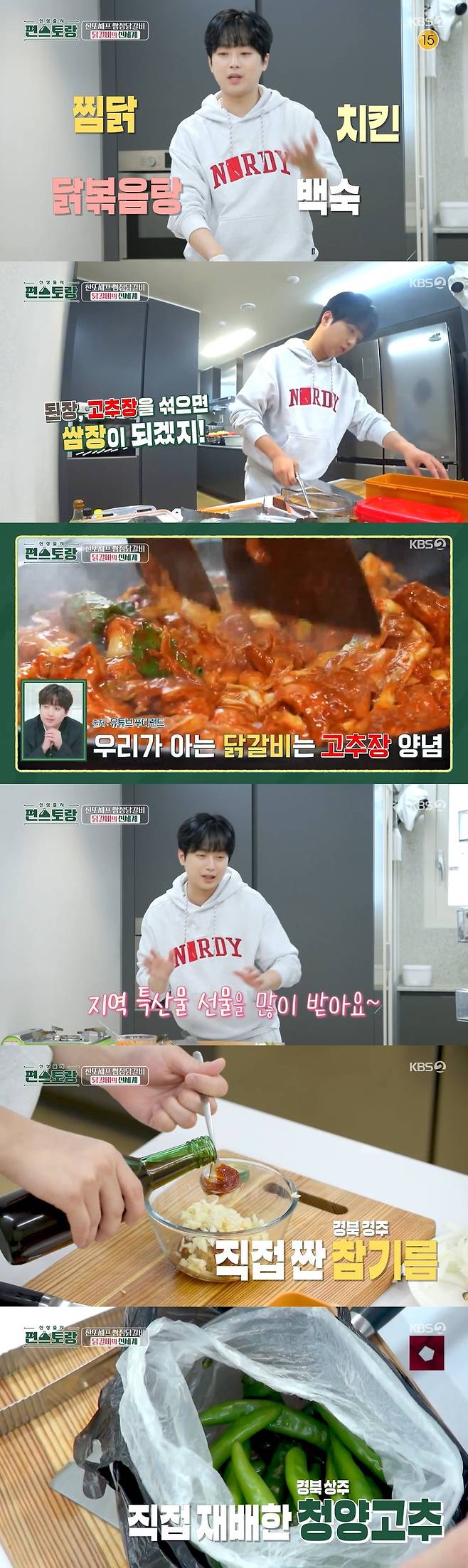 이날 이찬원은 냉장고에서 닭고기를 꺼내며 "닭은 해 먹을 게 너무 많다. 찜닭, 닭볶음탕, 백숙, 삼계탕 등 되게 많은데 닭갈비를 해보려고 한다"고 털어놨다.