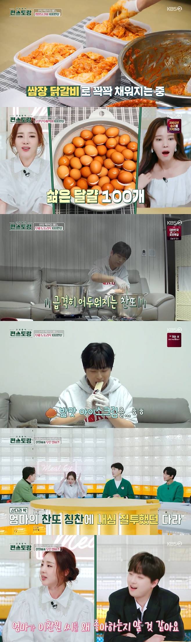한편 이찬원은 닭고기 10kg을 들고나와 모두를 놀라게 했다. 이에 산다라박은 "제 1년 치 식량이다"라고 말해 웃음을 자아냈다.