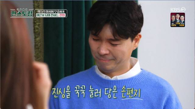 박수홍은 "나중에 너희들이 결혼을 할 거 아니냐. 내가 주례를 봐주겠다. 우리 애들 고생시키면 다리 몽둥이를 분지르겠다고"라 했고 곧이어 각종 밑반찬들을 챙겨줬다. 진심을 담은 손편지도 함께 전달했다.