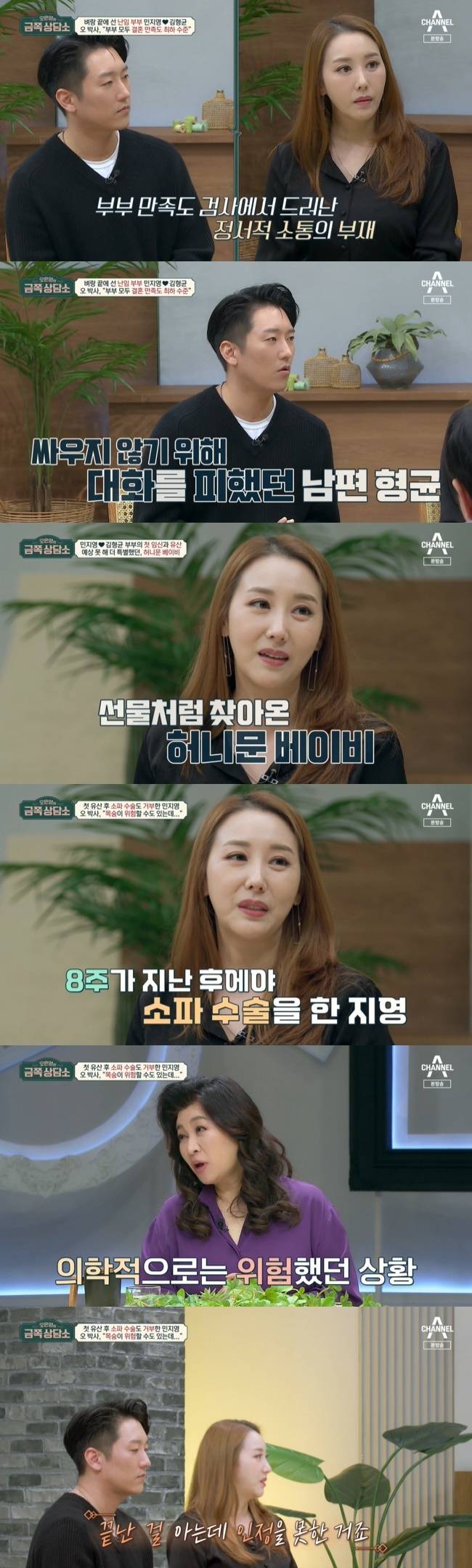 12월 2일 방송된 채널A ‘오은영의 금쪽상담소’에서는 임신 문제로 갈등을 빚는 민지영, 김형균 부부의 고민이 공개 됐다.