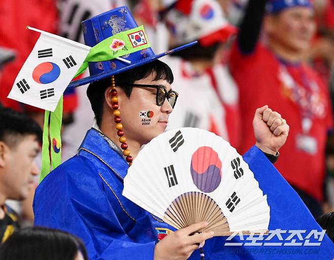 3일(한국시각) 카타르 도하 알라이얀의 에듀케이션 시티 스타디움에서 한국과 포르투갈의 경기가 열린다. 경기장을 찾은 축구팬들이 열띤 응원을 펼치고 있다. 알라이얀(카타르)=송정헌 기자songs@sportschosun.com/2022.12.03/