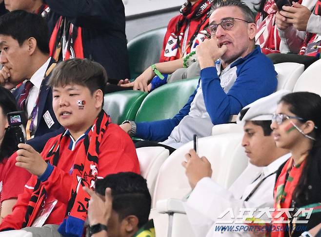 3일(한국시각) 카타르 도하 알라이얀의 에듀케이션 시티 스타디움에서 한국과 포르투갈의 경기가 열렸다. 관중석 벤투 감독 앞에 여행 유튜버 곽튜브가 함께 앉아 경기를 관전하고 있다. 알라이얀(카타르)=송정헌 기자songs@sportschosun.com/2022.12.03/