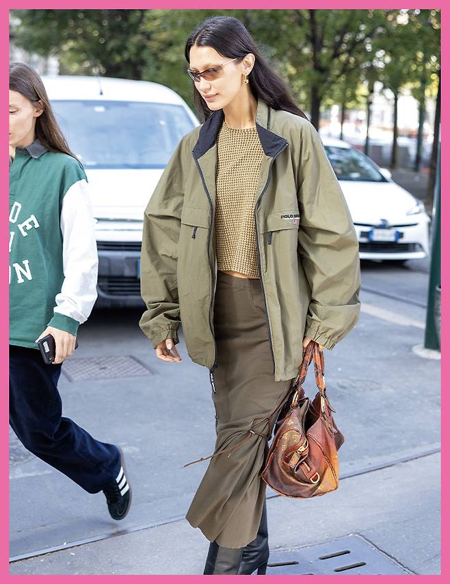 얼마 전 열린 2023 S/S 런웨이를 씹어 먹어버린 벨라 하디드! 벨라는 런웨이에서도 멋지지만 리얼웨이에서는 그야말로 끝내준다. 특히 빈티지와 스포티한 의상을 예상치 못한 아이템과 믹스매치하는 스타일링 실력으로 스포츠 삭스, 파라슈트 팬츠 같은 아이템을 트렌드 선상에 올려놓았고, 빈티지 샤넬, 프라다, 루이 비통을 애용하며 자신만의 독특한 스타일 세계를 완성했다.