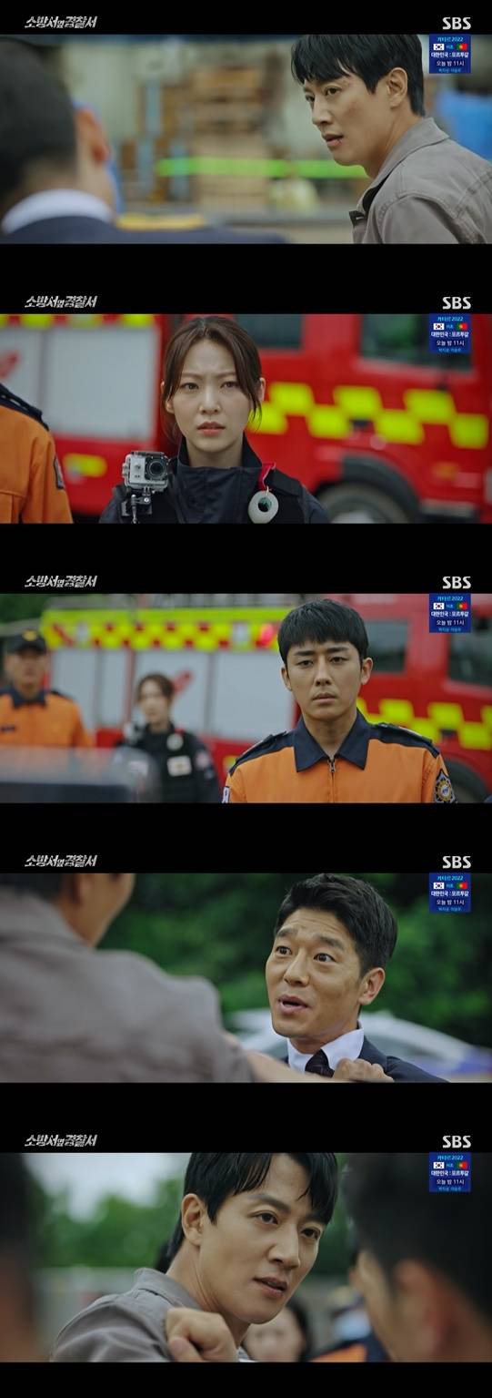 이날 진호개를 비롯한 경찰들과 봉도진(손호준)과 송설(공승연) 등 소방대원들이 함바집 화재 현장을 찾아 상황을 수습했다.