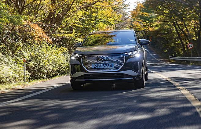 소비자가 가장 크게 만족하는 건 디자인일 것이다. 하차감의 핵심은 브랜드와 디자인 아니겠나. Q4 e-트론은 2019년 선보인 콘셉트 디자인을 그대로 따랐다. 전면부에는 수직 스트럿이 들어간 8각형 싱글 프레임 그릴이 넓게 자리해 전기차의 정체성을 분명히 드러낸다. 짧은 전방 오버행과 큼직한 휠, 넓은 트랙과 근육질 차체는 굉장한 힘과 날렵함을 기대하게 만든다. 전기차는 항력계수에 특히 예민하다. 전면부가 반듯하고 부드러운 형상을 띠는데, 그러니까 얼굴이 입체적이기보단 밋밋하다는 뜻이다. 하지만 Q4 e-트론은 역동적이고 입체적인 얼굴임에도 항력계수가 0.28에 불과해 높은 효율성을 자랑한다.