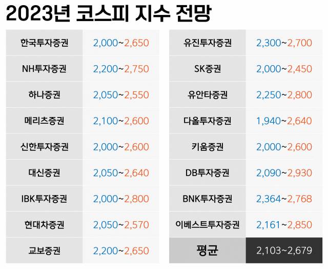 소수의견이긴 하지만, 상고하저를 전망한 증권사도 있습니다. 다올투자증권은 "증시는 내년 상반기에 환율과 금리 안정 기대감 등으로 오름세를 보이다가 하반기에 경기 침체 가능성과 신용 위험으로 인한 불확실성으로 약세로 돌아설 것"이라고 분석했습니다.