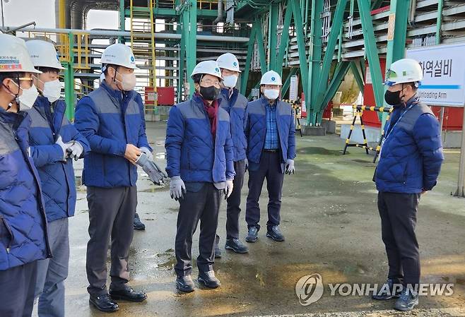 (서울=연합뉴스) 천영길 산업통상자원부 에너지산업실장(왼쪽 네 번째)이 3일 한국가스공사 인천 LNG 인수기지에 방문해 천연가스 수급현황 및 애로사항을 청취하고 있다. 2022.12.3 [산업통상자원부 제공. 재판매 및 DB 금지]