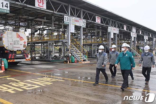 (서울=뉴스1) 민경석 기자 = 박일준 산업통상자원부 2차관이 3일 오전 충남 천안시 대한송유관공사 천안 저유소를 방문해 현장을 둘러보고 있다.(산업통상자원부 제공) 2022.12.3/뉴스1