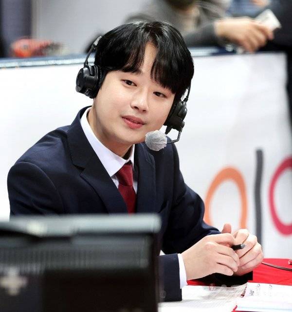 3일 서울 고척스카이돔에서 ‘2022 희망더하기 자선야구대회’가 열렸다. 트롯트 가수 이찬원이 특별해설위원으로 참석해 경기를 해설하고 있다.