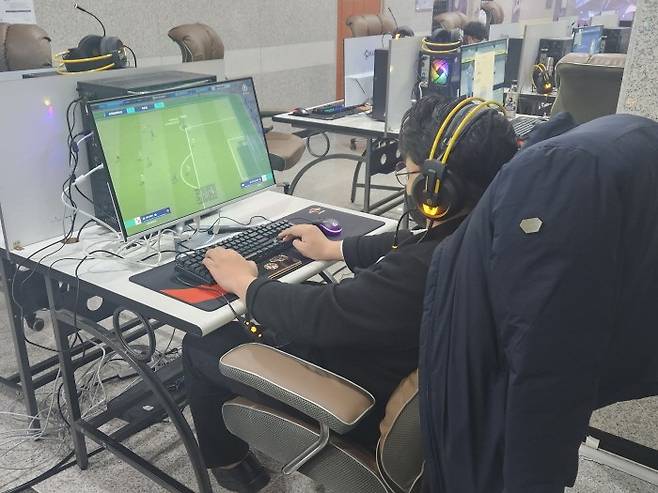 한 IEF 출전선수가 별도 보조경기장서 피파온라인4 본선전을 진행하고 있다.