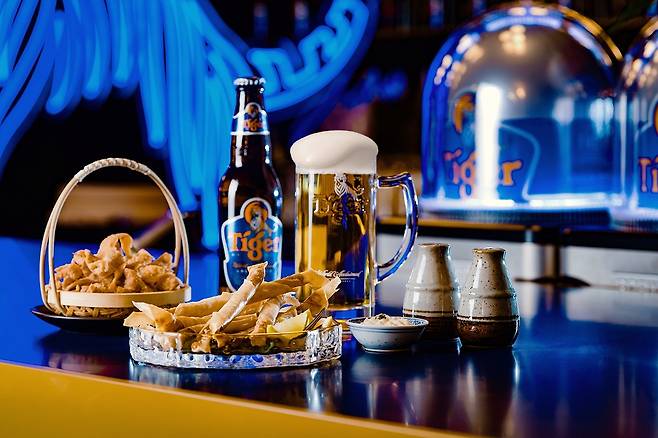 The pub has a selection of draft beer options, from Tiger Beer to Heineken, Edelweiss and Lagunitas IPA. Various cocktails, including the pub's own Tiger Beer-based cocktail, are also served