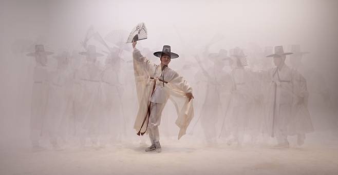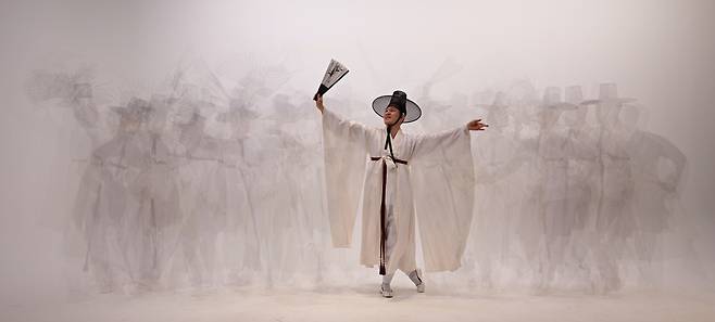 The hanryangmu dance is usually performed by men who wear "dopo," the robe Joseon gentlemen wear, and "gat," a Joseon period hat worn by nobles.