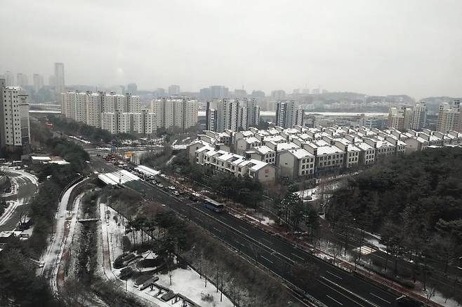 [3일 경기도 수원시 영통구 이의동에 내린 첫눈이 쌓여있다. (사진=연합뉴스)]