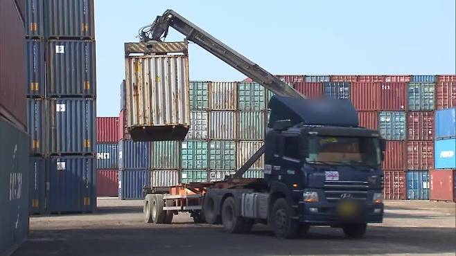 국내 최대 타이어 생산업체인 한국타이어 대전·금산공장은 컨테이너 입출고율이 평시의 40%대로 급감했습니다.