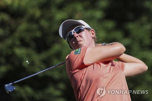 South Africa's Ashleigh Buhai tees off on the 14th hole during the Australian Open golf championship at Victoria golf course in Melbourne, Australia, Saturday, Dec. 3, 2022. (AP Photo/Asanka Brendon Ratnayake)