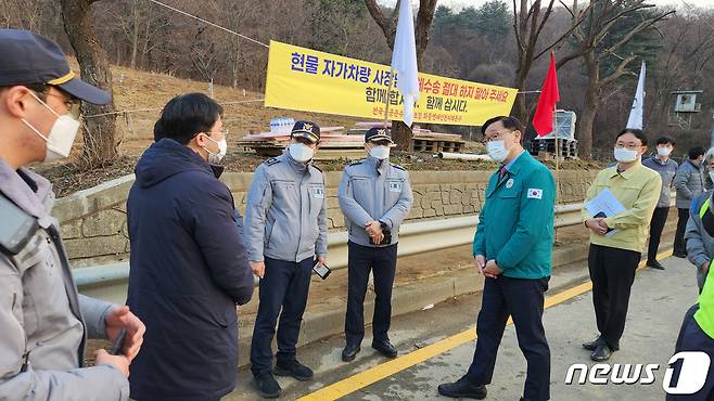 (서울=뉴스1) 김진환 기자 = 어명소 국토교통부 제2차관(오른쪽 두 번째)이 3일 오후 경기 성남시 대한송유관공사 서울지사를 방문해 화물노조 파업에 따른 휘발유, 경유 등 국내 석유제품 출하 현장을 점검하고 있다. (국토교통부 제공) 2022.12.3/뉴스1