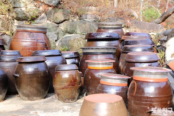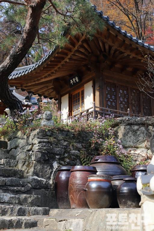 암자 곳곳에 장독대를 비롯하여 여성의 섬세한 손길이 미쳤음을 보여준다.