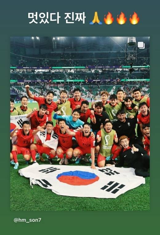 포르투갈과의 경기에서 후반 추가시간 극적인 역전골을 터트린 황희찬 선수의 사진도 "존멋"이라고 썼다.