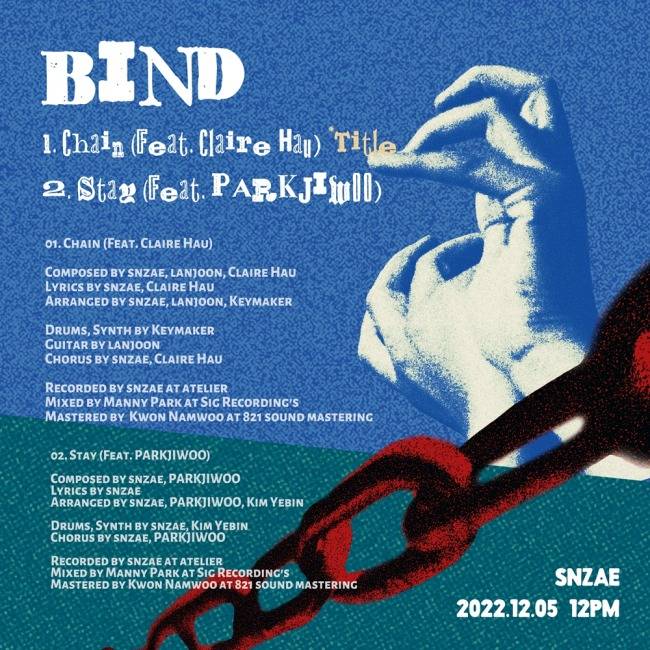아메바컬쳐는 지난 2일 오후에 공식 SNS에 선재의 새 디지털 싱글 'Bind (바인드)'의 트랙리스트 이미지를 공개했다.