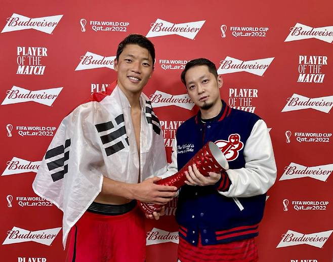 2022 FIFA 카타르 월드컵 공식 후원 브랜드 버드와이저가 2일(현지시간) 카타르 아라얀 에듀케이션 시티 스타디움에서 한국과 포르투갈 경기 종료 직후, 한국 국가대표팀 황희찬에게 '플레이어 오브 더 매치(POTM, Player of the Match)' 트로피를 수여했다고 밝혔다.