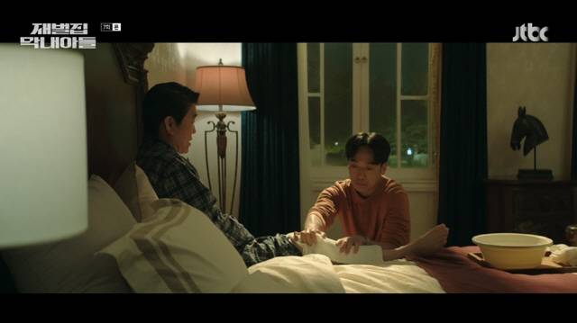 3일 방송된 JTBC '재벌집 막내아들'에서는 진양철(이성민 분)이 진도준(송중기 분)의 진짜 정체를 눈치챘다.