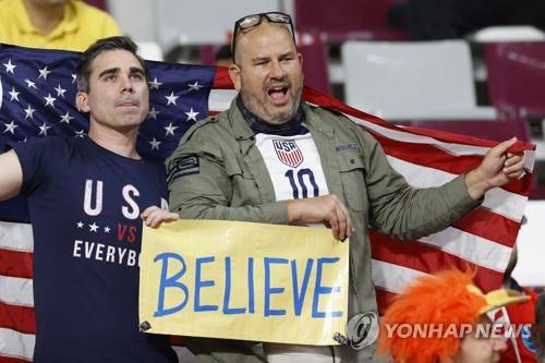 epa10346052 Supporters of the USA before the FIFA World Cup 2022 round of 16 soccer match between the Netherlands and the USA at Khalifa International Stadium in Doha, Qatar, 03 December 2022. EPA/Rungroj Yongrit