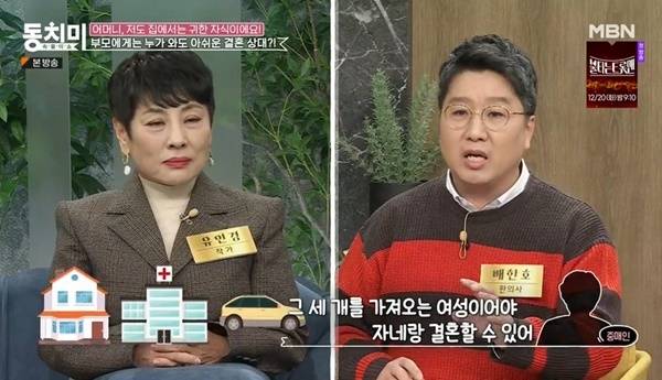 이날 방송에서 한의사 배한호는 “아버지가 한의대를 들어가라고 하셔서 정확하게 한의대를 들어갔다. 그래서 귀한 자식이 됐다. 큰 한식당에서 미팅을 하라고 해서 만났더니 그 분이 마담 역할을 하는 분이었다. 처음 들었던 이야기가 열쇠 3개 가진 여자를 만나야 한다고 하더라”며 집, 병원, 차를 가져오는 여자와 결혼을 해야 한다는 말을 들었다고 했다.