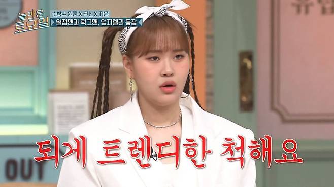 엄지윤은 "이렇게 하는 것도 트렌디하지 못하다"고 비판을 이어갔다. "조진세는 그냥 아무것도 모른다. 따라하는 것도 없고 모른다"고 덧붙였다.