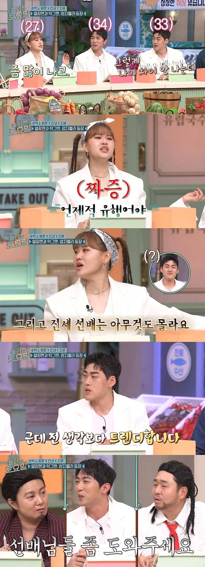'놀라운 토요일' 엄지윤이 김원훈, 조진세와의 세대 차이를 언급했다.
