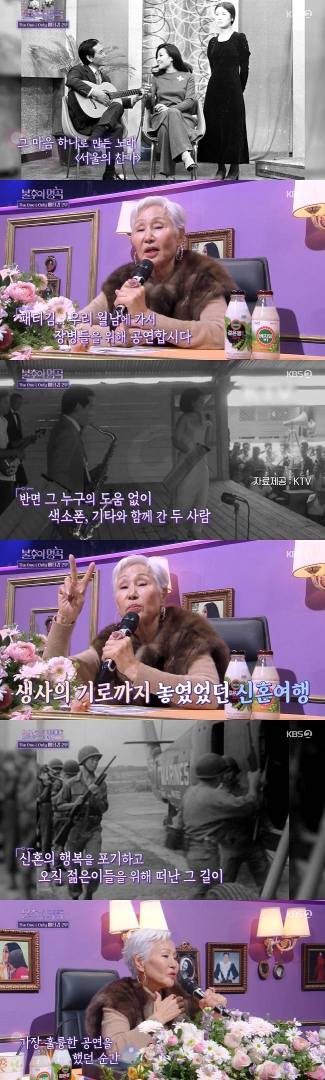 12월 3일 방송된 KBS 2TV ‘불후의 명곡’에서는 패티김이 신혼여행 때 위문 공연을 간 추억을 회상했다.