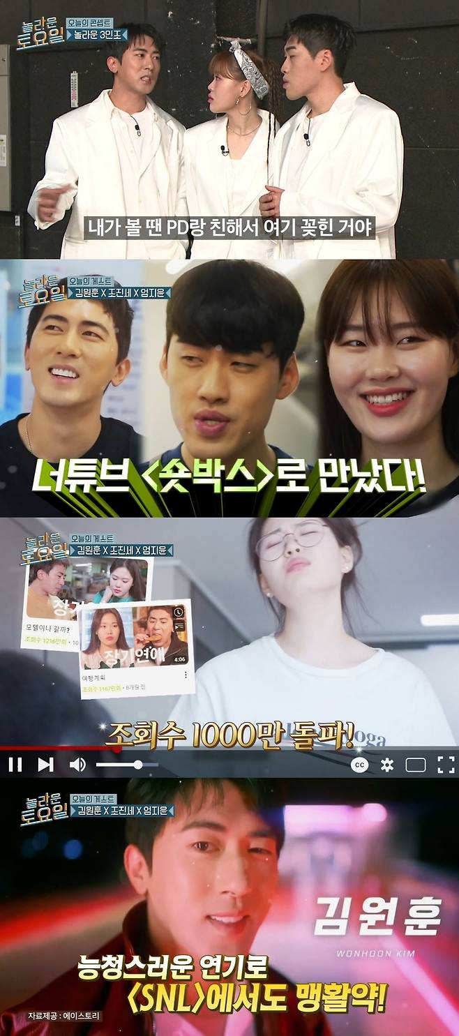 12월 3일 방송된 tvN '놀라운 토요일'에서는 인기 유튜브 채널 '숏박스' 개그맨 김원훈, 조진세, 엄지윤이 게스트로 출연했다.