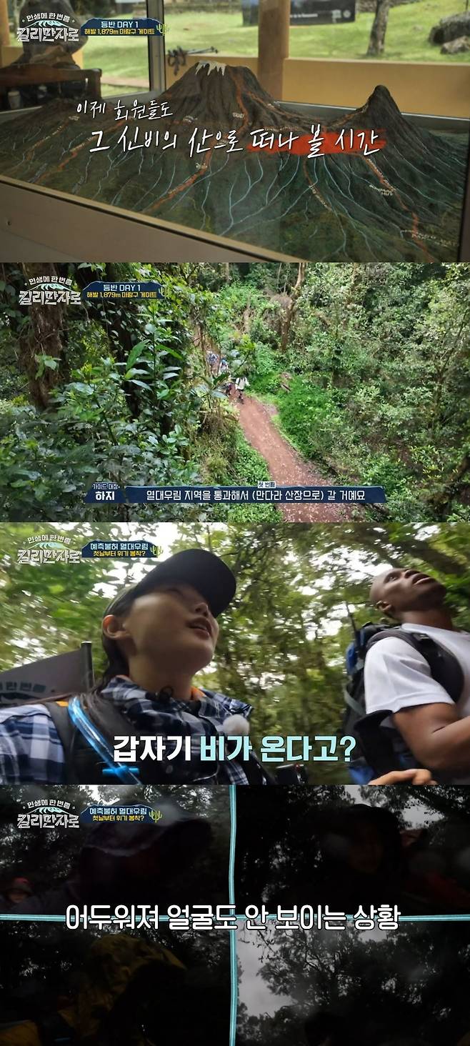 다음 날 멤버들은 윤은혜가 끓인 미역국으로 든든하게 아침을 챙긴 후, 환호와 열정으로 킬리만자로 등반을 시작했다. 킬리만자로 역대급 인원으로, 현지 스태프까지 총 125명이 오르는 여정. 신비의 열대우림을 지나 해발 2720m 만다라 산장까지 가는 여정이 첫 날의 일정이었다.